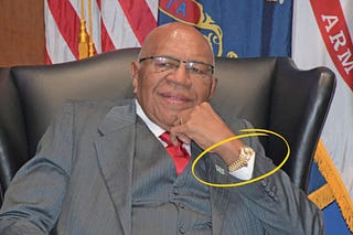 Prime Minister Sitiveni Rabuka sporting a gold Rolex watch.